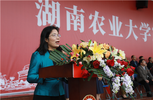 校党委书记陈弘,中国工程院院士、校长邹学校,中国工程院院士官春云、印遇龙、刘仲华,全体在校校领导、党委委员出席,典礼由副校长张立主持。