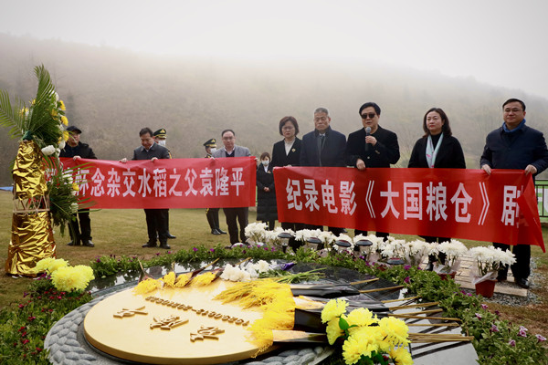 当天上午,校党委副书记段美娟、副校长吴波陪同《大国粮仓》剧组一行前往长沙市唐人万寿园陵墓深切祭奠了袁隆平先生。