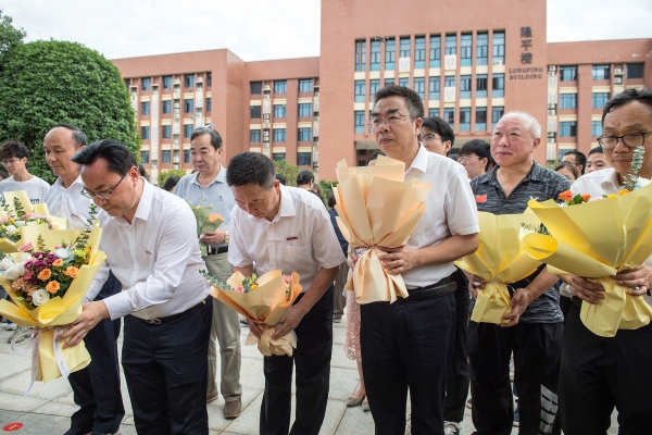 与会师生向袁隆平雕像敬献鲜花 毛尚文 摄