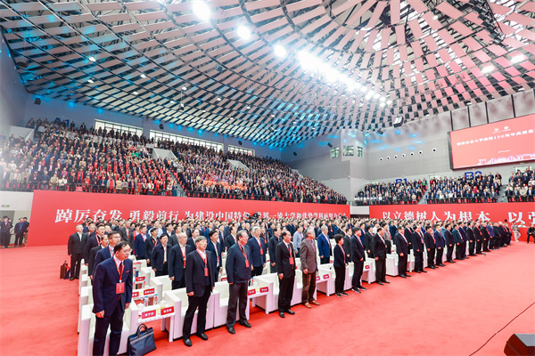 “我们朴诚 奋勉 求实 创新,愿把智慧和汗水奉献……”昂扬向上、朝气蓬勃的歌声在校园里回荡,既是对薪火相传的回音,也是对美好未来的呼唤。大会在青春激昂、意蕴深远的校歌声中落下帷幕。